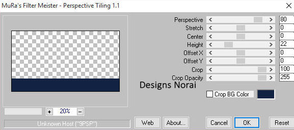 3.- Bajar opacidad a 80, nueva capa rellenamos con color #9cadcd, complementos, efecto Mura's Meister/Perspective Tiling, (Ver Captura).-